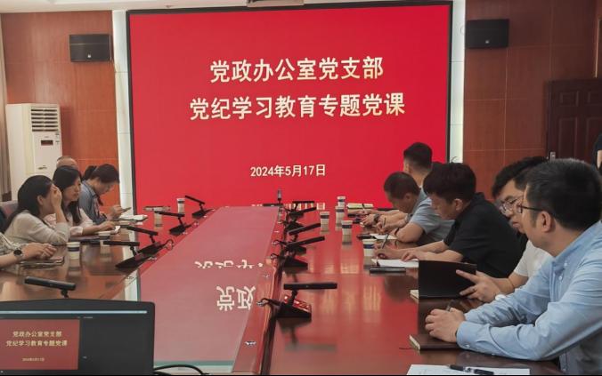 根据学校党纪学习教育工作专班安排部署,5月17日下午,党政办公室党支部曾凤括同志在行政楼332会议室,讲授了题为“讲政治、懂规矩、强服务,担当作为推进新时代办公室工作高质量开展”的专题党课,党政办公室全体工作人员参加了学习。