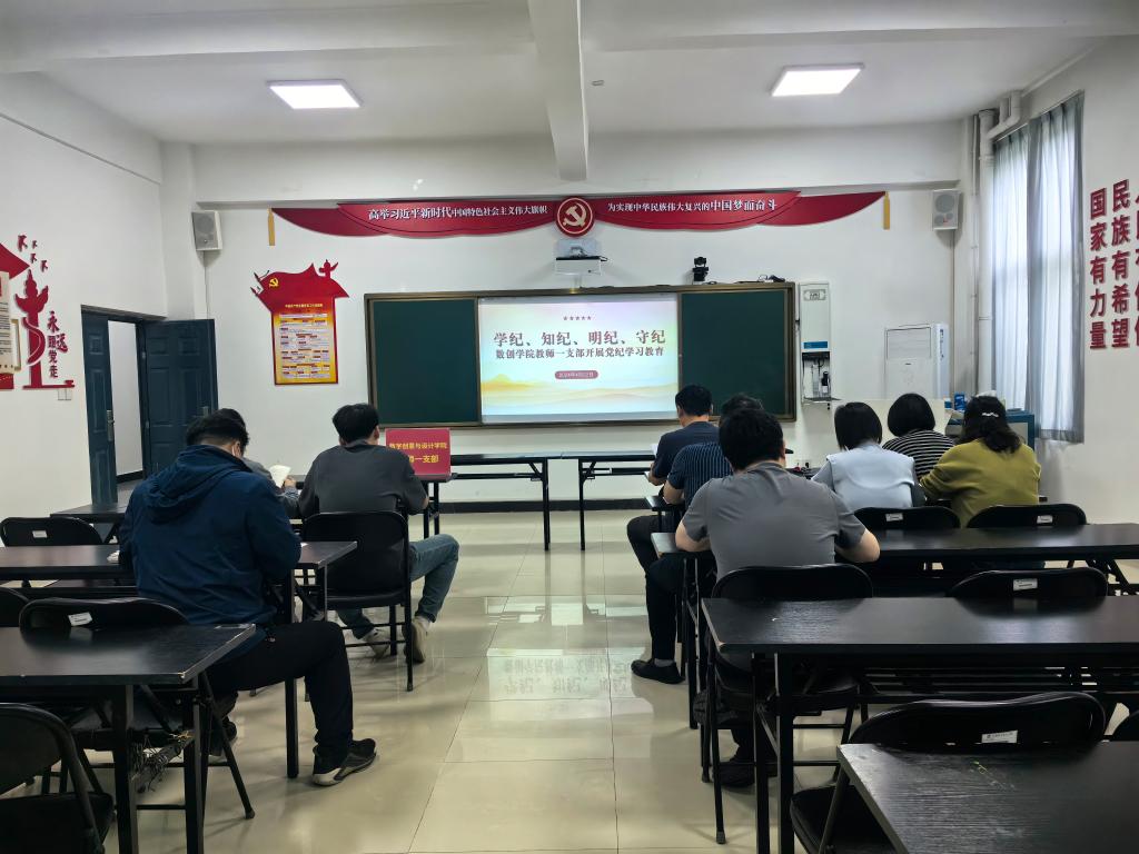 为进一步贯彻落实学校党委关于开展党纪学习教育工作部署。4月21日下午,数字创意与设计学院教师第一党支部在学院党员活动室开展了以“学纪、知纪、明纪、守纪”为主题党纪学习教育。会议由党支部书记朱函兵主持。