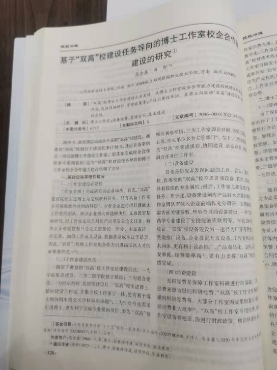 另一个遗憾来自学校,高金鑫承担着双高校建设任务,他在2021年和妻子田野一同撰写的《基于“双高”校建设任务导向的博士工作室校企合作能力建设的研究》便是他对建设博士工作室的思考和行动总结,鉴于科研所需,学校上半年调整公用房,准备留出博士工作室研发场地,让高金鑫及团队大展拳脚,“可惜天不遂人愿,这篇已发表的论文和研发场地,高金鑫都看不到了。” 智慧健康学院党总支书记王冠无比遗憾地说。