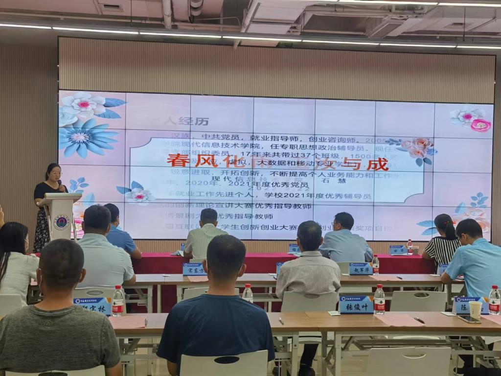 9月22日下午,我校2022年辅导员风采展暨辅导员年度人物评选活动在创业孵化园五楼举行。校长梅乐堂,党委副书记、纪委书记田华出席活动,学生工作部及各二级学院相关负责人观摩比赛。河南开放大学、郑州铁路职业技术学院等5所兄弟院校学工部部长应邀担任活动评委。