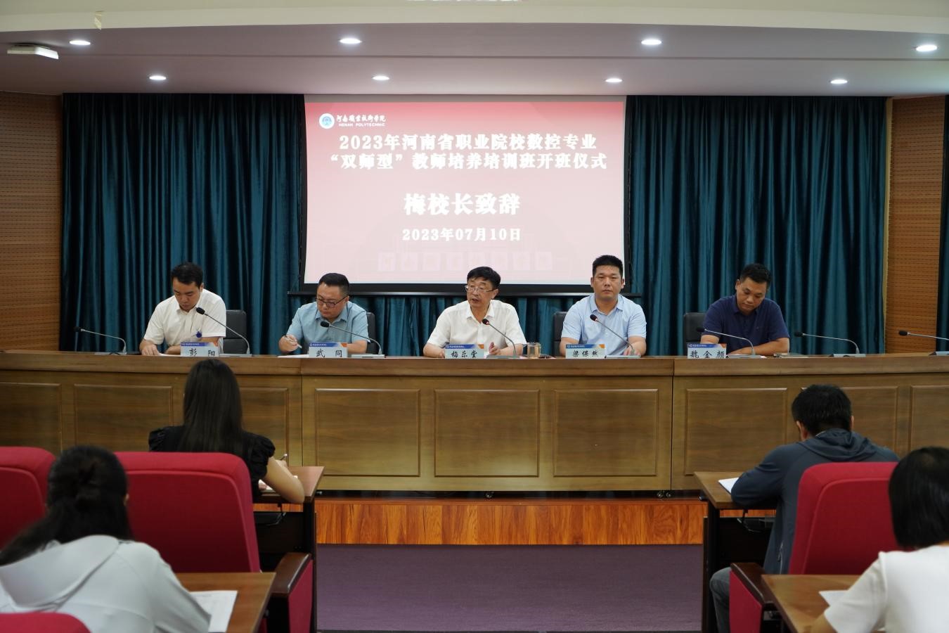 7月10日上午,由雷竞技雷承办的2023年河南省职业院校数控技术专业“双师型”教师培养培训班正式开班。校长梅乐堂出席开班仪式并讲话。智能制造学院、继续教育与培训中心和相关企业负责人以及来自各地市的22个高职院校30名教师代表参加开班仪式。