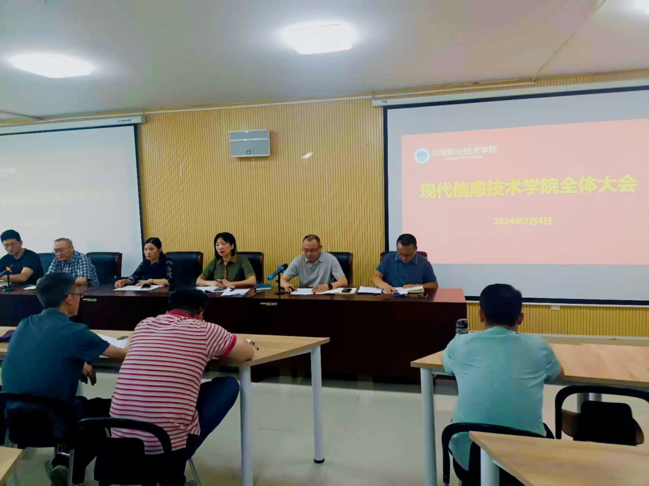 7月4日,现代信息技术学院在笃行楼525召开全体大会,学院领导班子成员及全体教职工参加。会议由学院院长李纪云主持。